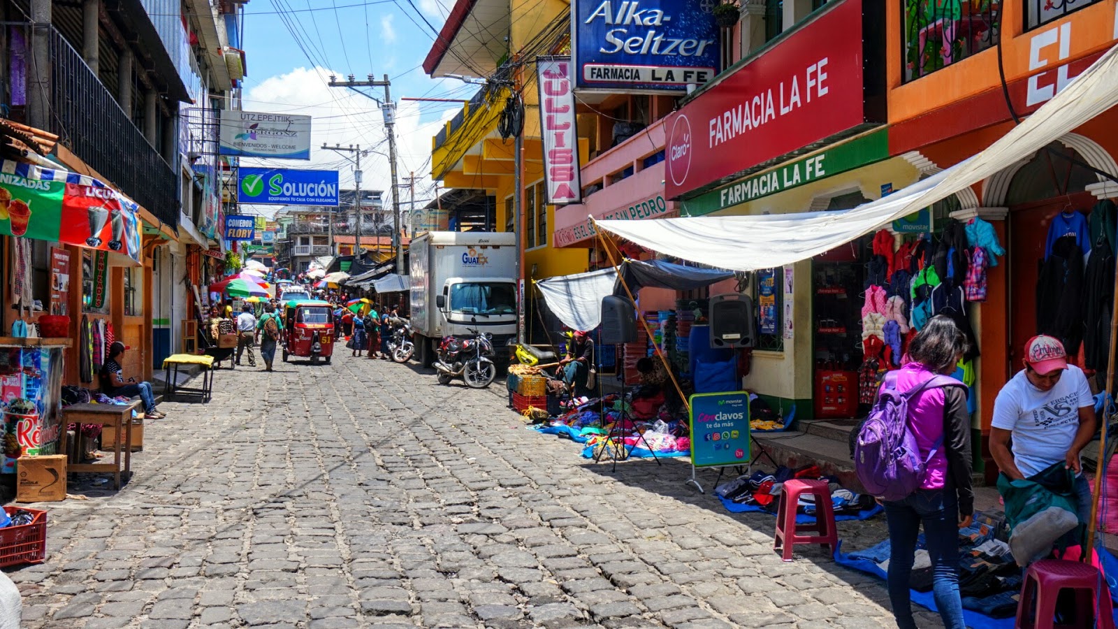 Nach 20 Minuten kamen wir in San Pedro an. Eine liebenswerte kleine Stadt, wo die Menschen die eingeborene Mayasprache Tz'utujil sprechen und die Frauen traditionelle Kleidung tragen. Wir lernten den Schreiner Samuel kennen, welcher die Spanische Sprache lernte. Ich war erstaunt, wie gut wir uns auf spanisch Unterhalten konnten, weil es ja von keinem von uns die Muttersprache war. Er arbeitet seit einigen Jahren als Schreiner, obwohl er nicht lesen kann. Er lernte nur die Nummern, weil diese für den Beruf wichtig sind. Diese Begegnung war herzerwärmend und traurig zugleich. Später sahen wir eine Kirche mit einem grossen Turm. Es stellte sich heraus, dass wir dort hinauf konnten um einige Fotos von der Stadt und vom Atitlan See zu machen. In der Spitze des Turms war eine Radiostation. Dieser Mann versorgt San Pedro und alle Dörfer um den See mit guter, alter, traditioneller Musik. Er war sehr glücklich, dass wir ihn dort oben besuchten.